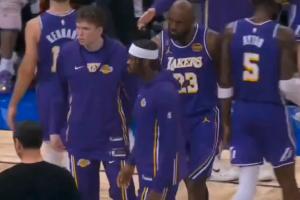 GIF-詹姆斯等人凑上前听东契奇与裁判教练