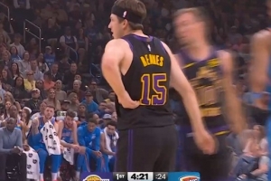 据湖人队记Dave McMenamin报道,里夫斯在暂停结束后直接回到更衣室接受检查。