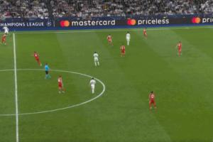 阿诺德后场长传发动攻势,巴尔韦德插上,诺伊尔出击赶在阿方索之前,将皮球截获。