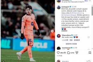 衷心感谢一路相伴、始终帮助我的所有人,尤其是我的家人和朋友,感谢你们永远陪在我的身边。 我将继续努力,争取更多的机会。巴萨万岁,永远!”