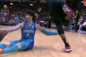 这不看回放?三球用手扒阿德巴约脚后跟致其倒地受伤 已提前退赛