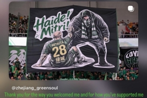 体育资讯4月18日讯 中超第6轮,浙江队主场0-0战平北京国安,本场比赛前浙江队球迷打出TIFO,声援被停赛的外援米特里策。