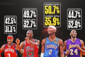 每名球员头顶最上方为生涯命中率 下方为三分命中率