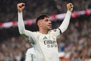 体育资讯3月15日讯 西甲第28轮比赛,皇马在伯纳乌迎战埃尔切。本场比赛上半场,主队以2-0的比分领先,巴尔韦德打进第2球。