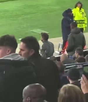 现场球迷拍到的画面,在死球时,替补的姆巴佩从看台来到场边,和裁判说B席的手球犯规。